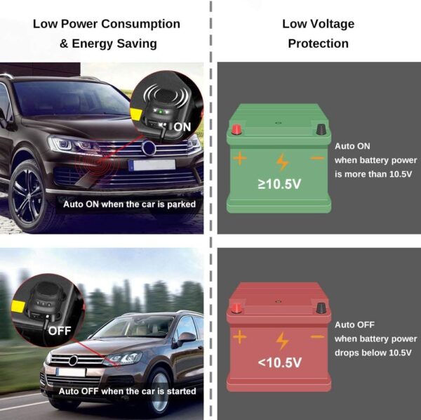 Automatically enters standby when the vehicle is in motion and resumes operation within 10 seconds after the engine is turned off. Perfect for daily drivers or parked vehicles.