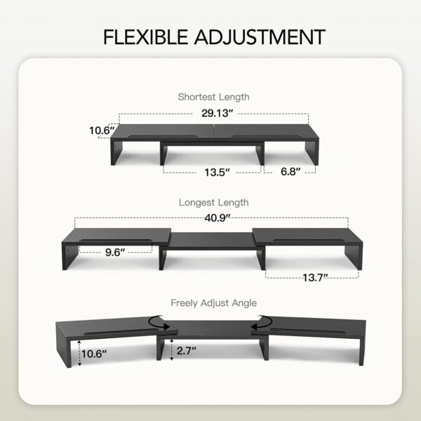 Verbeter je werkplek met deze multifunctionele dubbele monitorstandaard. Ontworpen om twee monitoren, laptops of printers te dragen. Verbetert ergonomie, maximaliseert bureauruimte en houdt je kantoor georganiseerd.