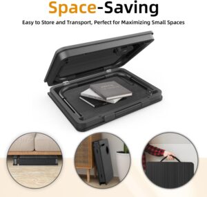 Werk, studeer of ontspan comfortabel met deze veelzijdige opvouwbare laptoptafel. Ontworpen voor gebruik op bed, bank, vloer of zelfs buiten. Biedt een ruime en ergonomische ondergrond voor laptops, boeken, maaltijden of entertainment.