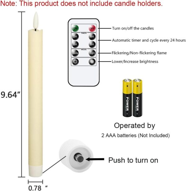 Creëer een sfeervolle ambiance met deze luxe set van 6 flikkerende flamloze tafelkaarsen. Elke kaars is 24,5 cm hoog en 2 cm breed, gemaakt van echt was met een 3D‑lont voor een realistische vlam. Het warme licht zorgt voor een romantische sfeer bij diners, bruiloften, feesten, verjaardagen of kerstdecoratie.